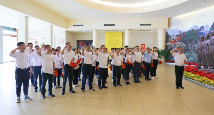 首先,黨員同志們?cè)诩o(jì)念雕塑園瞻仰烈士紀(jì)念碑、向烈士名錄墻敬獻(xiàn)鮮花,以寄托對(duì)革命先烈的哀思和敬仰。接著,道橋分公司黨委副書記楊光武作為領(lǐng)誓人在廣西革命紀(jì)念館帶領(lǐng)全體黨員同志重溫入黨誓詞,致敬信仰。黨員同志們通過專職講解員對(duì)戰(zhàn)爭圖片、歷史文物、文獻(xiàn)史料的講解,跟隨英雄事跡追尋難忘的“紅色”記憶,聆聽革命先烈的事跡,汲取先烈們對(duì)革命事業(yè)勇于奉獻(xiàn)的精神力量。過程中,黨支部環(huán)繞烈士陵園開展“不忘初心砥礪前行”健步走活動(dòng),在緬懷革命先烈發(fā)揚(yáng)革命精神的同時(shí),要堅(jiān)定理想信念,珍惜幸福生活。