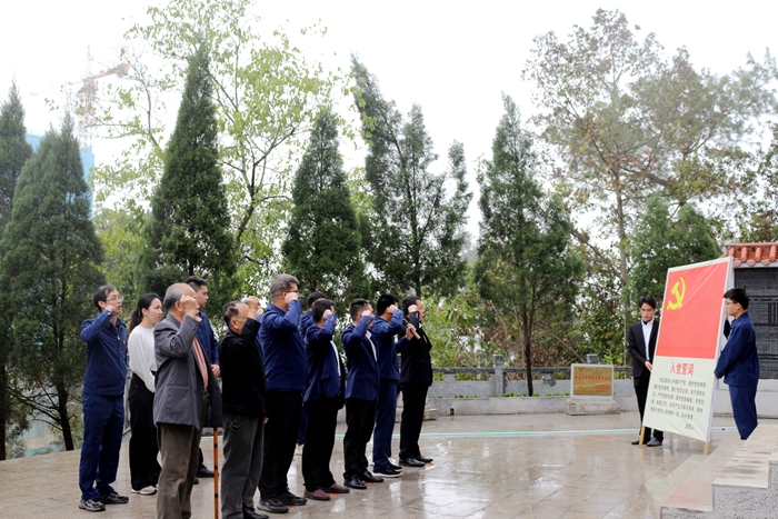 在蔣志雨帶領(lǐng)下,全體黨員重溫了入黨誓詞,瞻仰了環(huán)江著名愛國民主人士、革命烈士盧燾將軍烈士雕像,認(rèn)真聆聽了盧燾將軍的生平介紹,深刻悼念革命烈士。