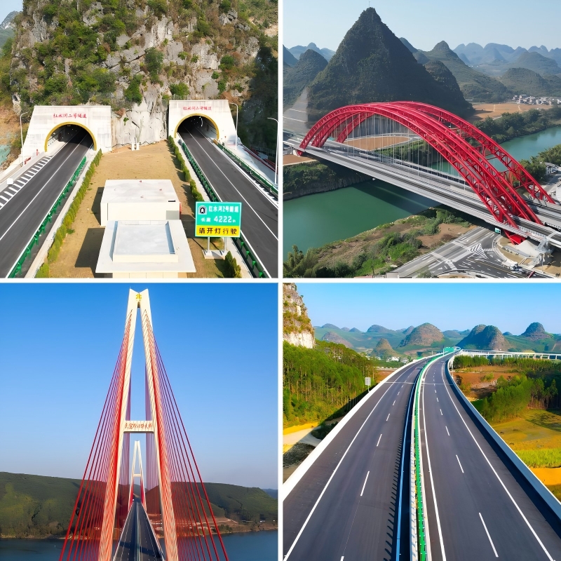 自2022年6月開工令下達(dá)以來,廣西路橋集團建設(shè)者以創(chuàng)“國家優(yōu)質(zhì)工程”為建設(shè)目標(biāo),接連克服拆遷難度大、涉路施工險、隧道不良地段多、大跨徑斜拉橋建設(shè)技術(shù)難度大等困難,創(chuàng)新纜索吊裝系統(tǒng)應(yīng)用于斜拉橋鋼箱梁安裝,設(shè)立“路面品控中心”,研制鋼格構(gòu)梁吊裝新工具,推進“高空作業(yè)平地化”,高質(zhì)量建設(shè)廣西已建成最大跨徑、最高索塔斜拉橋——武宣黔江特大橋、新圩紅水河特大橋、果遂樞紐互通、長嶺水庫特大橋、紅水河2號隧道等重點控制性工程,實現(xiàn)了施工、管理的全過程數(shù)智化管控,修建出一條內(nèi)優(yōu)外美、舒適安全、綠色環(huán)保、社會滿意的“品質(zhì)武忻高速”。